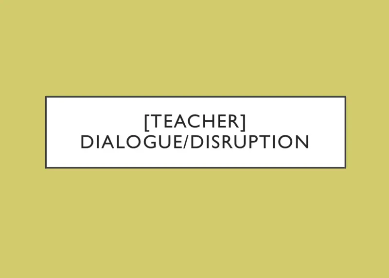1. Dialogue (+Disruption) (Đối thoại + gián đoạn)Disruption là sự gián đoạn được nhìn trong vị trí đối lập với tính liên tục và mở ra điều kiện cho đối thoại. Tính gián đoạn chuyên trở trong nó “tính giáo dục” vì tại thời điểm không-thời gian (có cảm giác) bị ngưng lại thì chính là lúc một người không hành động theo thói quen hay theo một lập trình định sẵn như một cái máy nữa mà bắt đầu dừng lại để suy ngẫm về (cách vận hành) của thế giới xung quanh. Trong bối cảnh daỵ-học, nếu người thầy có thể làm gián đoạn hay làm thảng thốt một lòng tin/một lỗi suy nghĩ sâu rễ bền gốc của người học thì ấy là một khoảnh khắc mang tính giáo dục. Và nếu người học có thể suy ngẫm về điều đó và đối thoại trở lại với người thầy thì hành động ấy lại càng tăng thêm giá trị cho “tính giáo dục.”